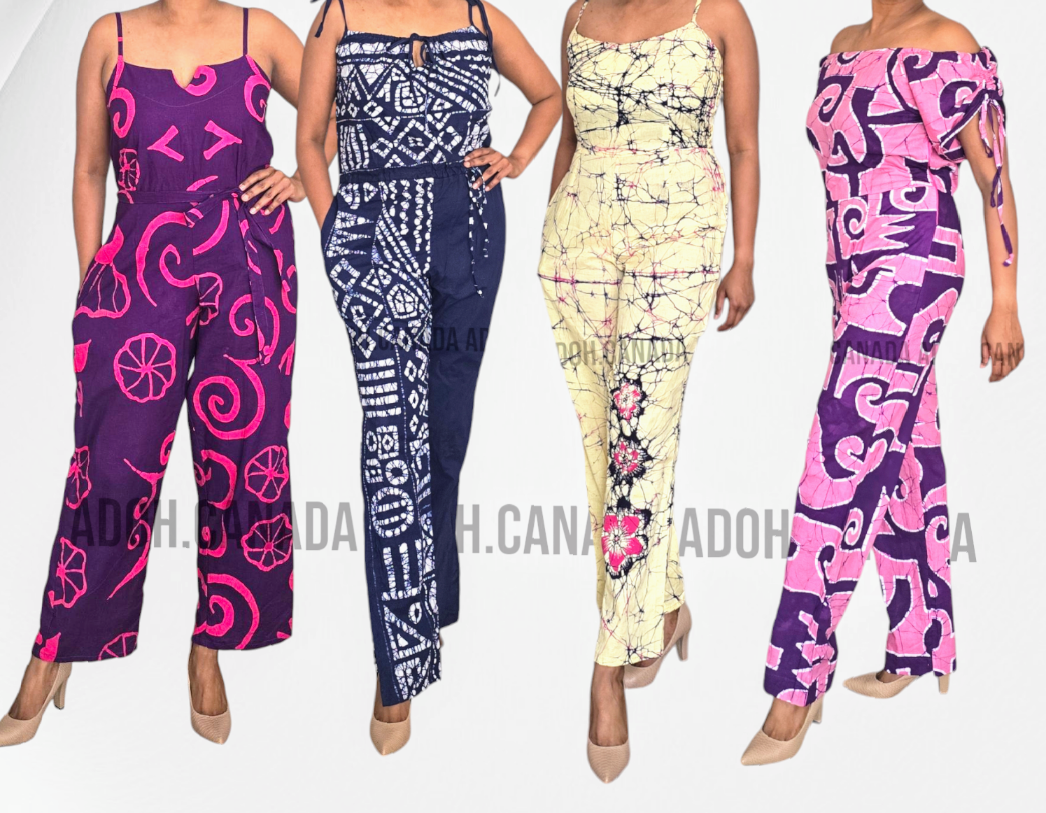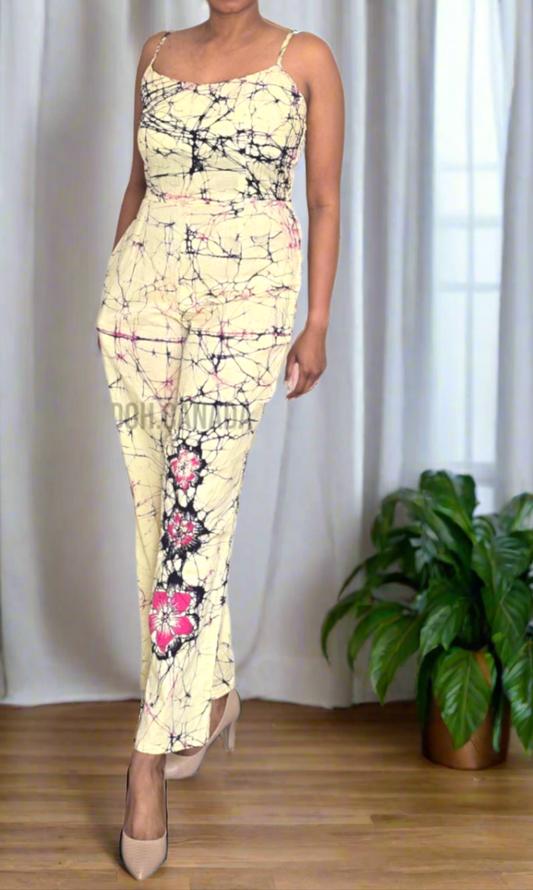 CC1181- Light yellow Batik Jumpsuit with pink floral design | Ceylon Batik | Hand Made |Summer Collection | Cotton Jump Suit | Summer Wear