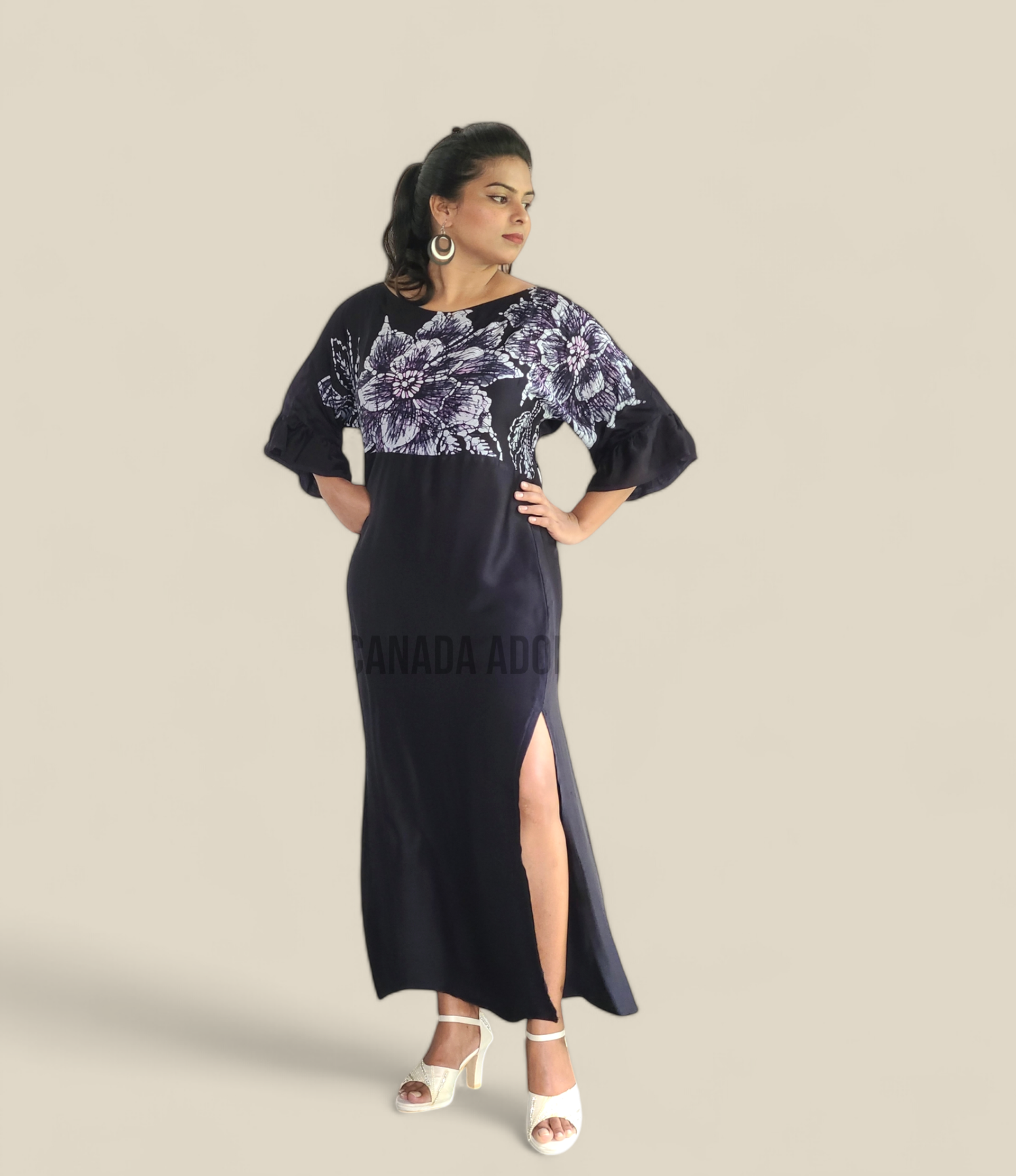 CC0067 - Green Leaves Long Batik Dress | Ceylon Batik | Hand Made | Summer Collection | Cotton Dress | Summer Wear