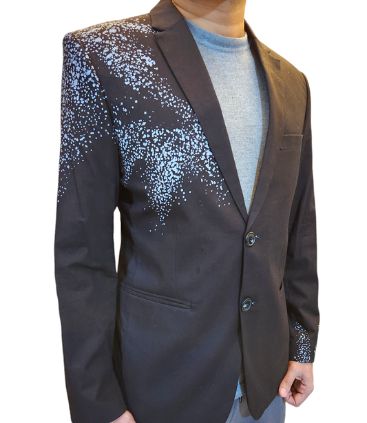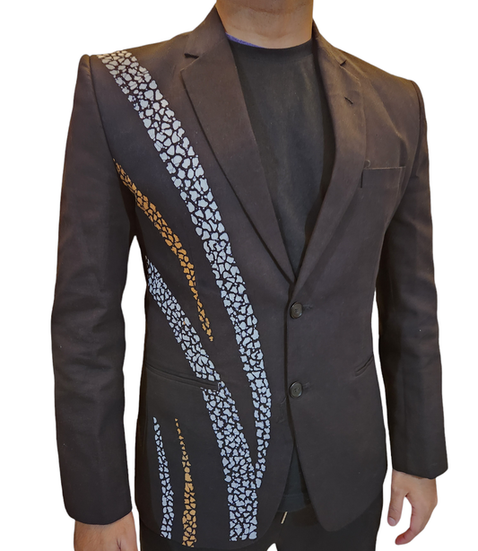 BL001 - Black Blazer with white and brown batik design /Batik Blazer /Gents Blazer /partywear/formal wear