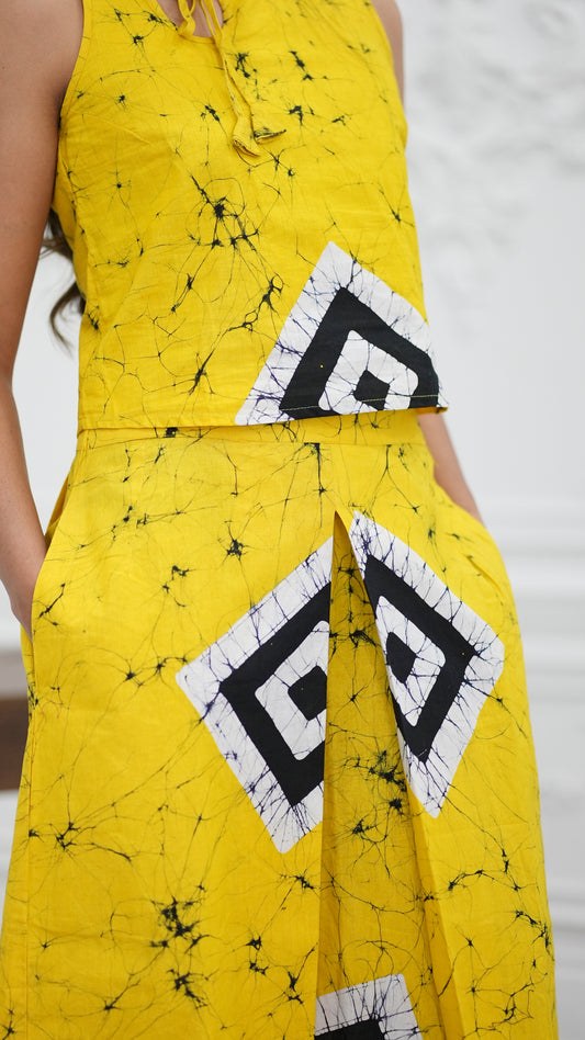 CC0001 - Diamond Yellow Long Skirt Batik & Crop Top | Ceylon Batik | Hand Made | Summer Collection | Cotton Dress | Summer Wear