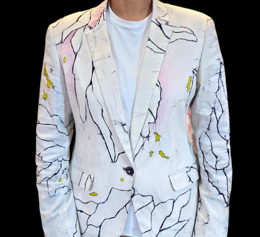 BL003 - White Blazer with abstract batik design/Batik Blazer /Women's Blazer /partywear/formal wear