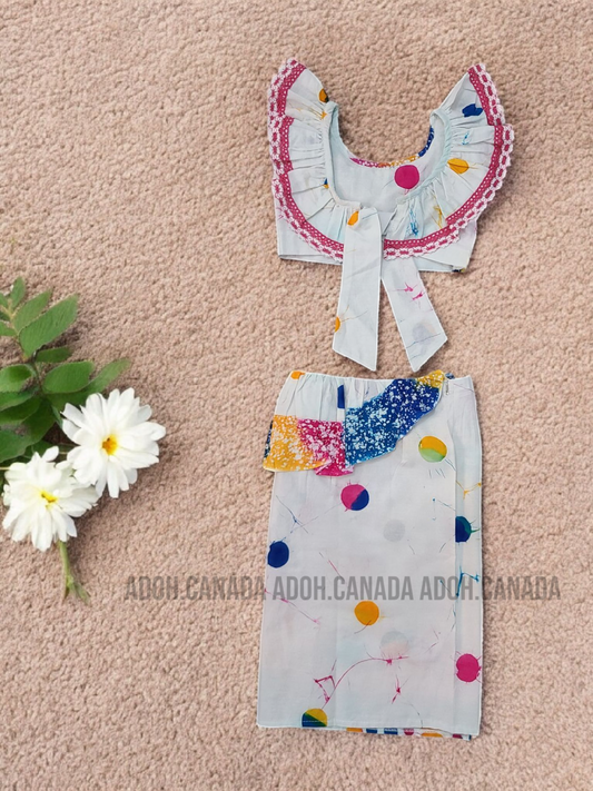 KG1296 - White with multi color round designed Lama Saree ( Kids Redda Hatte)| Ceylon Batik | Hand Made | Kids Collection | Summer Collection | Cotton Lama Saree | Kids Redda Hatte | Casual wearRegular price $32.00 CADRegular priceUnit price per-