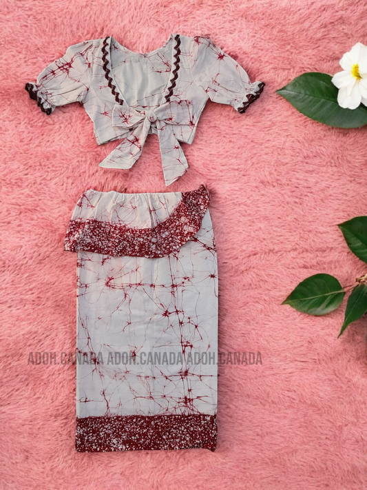 KG1298 - Dark red(Maroon) and white with Floral designed Lama Saree ( Kids Redda Hatte)| Ceylon Batik | Hand Made | Kids Collection | Summer Collection | Cotton Lama Saree | Kids Redda Hatte | Casual wearRegular price $32.00 CADRegular priceUnit price per-