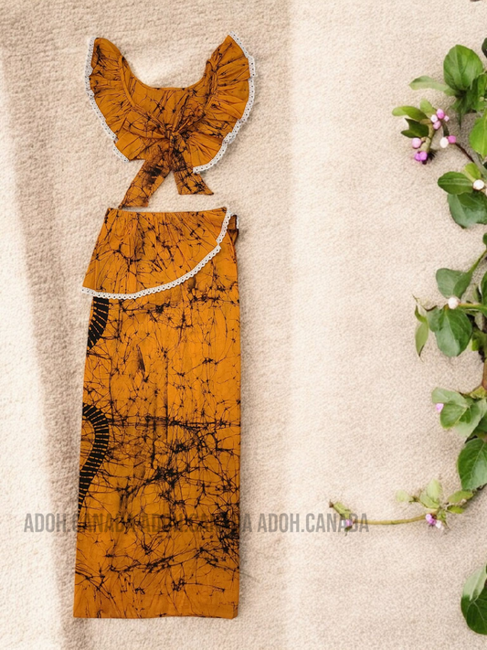 KG1307 - Orange with black designed Lama Saree ( Kids Redda Hatte)| Ceylon Batik | Hand Made | Kids Collection | Summer Collection | Cotton Lama Saree | Kids Redda Hatte | Casual wearRegular price $32.00 CADRegular priceUnit price per-