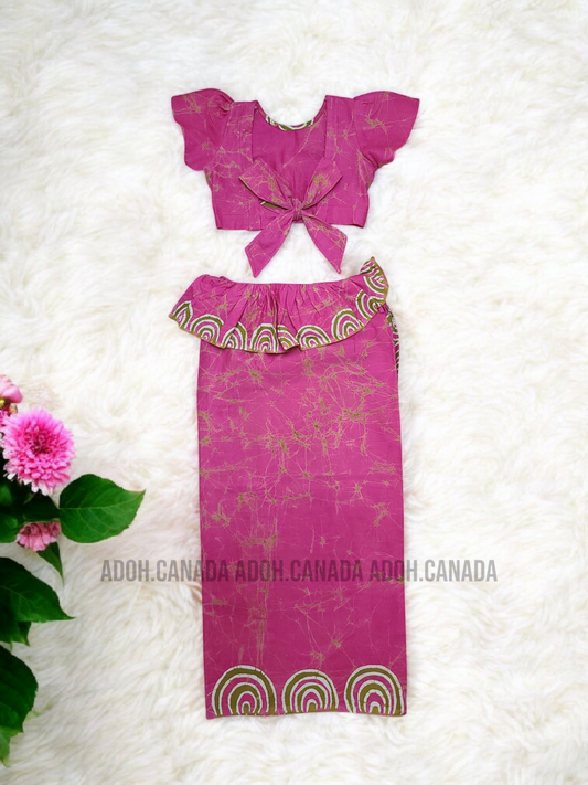 KG1306 - Pink colur with greenish designed Lama Saree ( Kids Redda Hatte)| Ceylon Batik | Hand Made | Kids Collection | Summer Collection | Cotton Lama Saree | Kids Redda Hatte | Casual wearRegular price $35.00 CADRegular priceUnit price per-