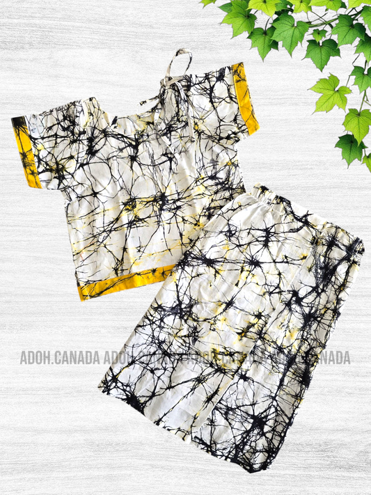 KSA1365- White/yellow with Black cracks Cotton Shirt & Sarong| Ceylon Batik | Hand Made | Kids Collection | Kid's Shirt |Cotton Shirt and Sarong| Summer Wear | CulturalRegular price From $15.00 CADRegular priceUnit price per-