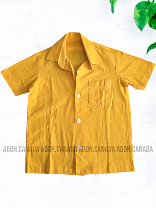 KSH0281 - Mustard yellow with black and red cracks designed Batik Shirt | Ceylon Batik | Hand Made | Kids Collection | Kid's Shirt |Cotton Shirt | Summer WearRegular price $19.00 CADRegular priceUnit price per-