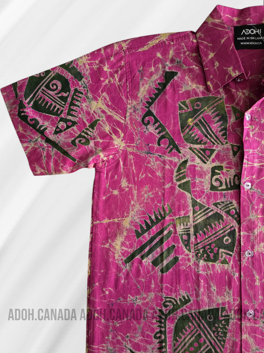 KSH0899 -Mulberry with fish designed Batik Shirt | Ceylon Batik | Hand Made | Men's Collection |Cotton Shirt | Summer WearRegular price $40.00 CADRegular priceUnit price per-