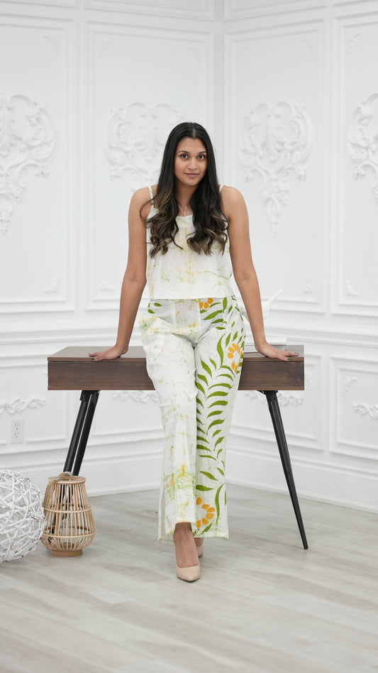 CC0033 - Batik White Pant & Batik Cracks Crop Top| Ceylon Batik | Hand Made | Summer Collection | Cotton Dress | Summer Wear