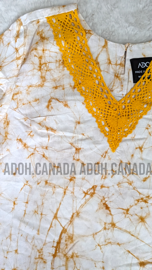 CC0511 - White Batik top with brown cracks | Ceylon Batik | Hand Made | Summer Collection | Cotton Dress | Summer wearRegular price $20.00 CADRegular priceUnit price per-