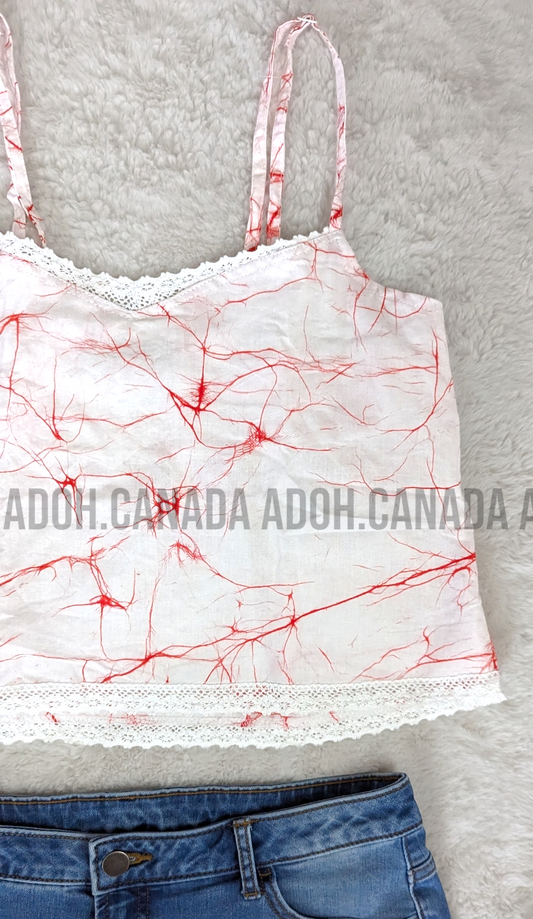 CC0509 - White top with red cracks crop Top Batik | Ceylon Batik | Hand Made | Summer Collection | Cotton Dress | Summer wearRegular price $20.00 CADRegular priceUnit price per-