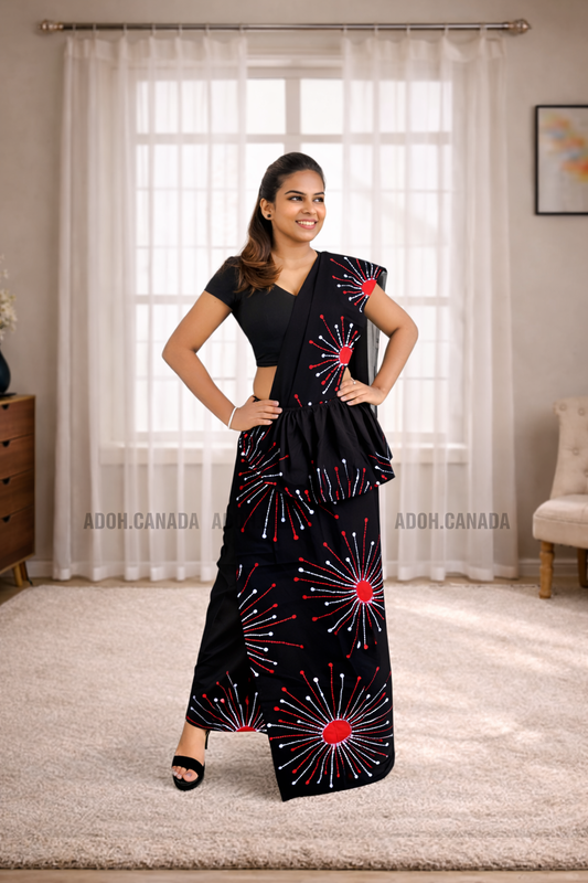 MU1566|Black with red designed Kandyan Made-up|Ceylon Batik| Cotton Kandyan Made-up Saree| Exclusive Designer Wear | Kandyan Made-up