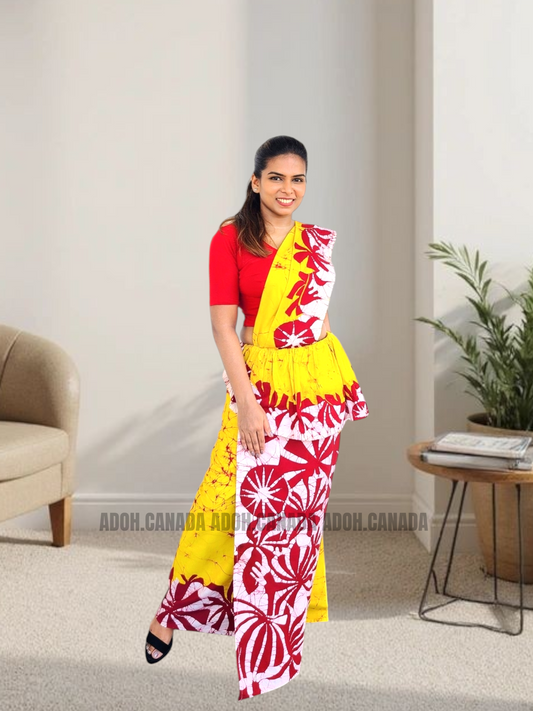 MU1567|Yellow with red and white designed Kandyan Made-up|Ceylon Batik| Cotton Kandyan Made-up Saree| Exclusive Designer Wear | Kandyan Made-up