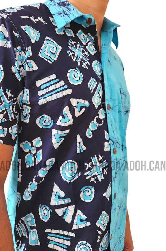 SH1150 - Light Blue and Dark Blue Batik Shirt | Ceylon Batik | Hand Made | Men's Collection | Cotton Shirt | Summer Wear