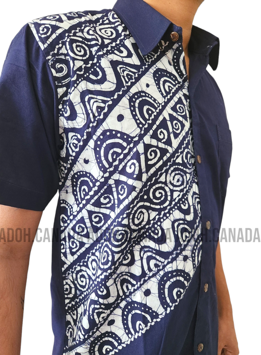 SH1148 - Dark Blue with white designed Batik Shirt | Ceylon Batik | Hand Made | Men's Collection | Cotton Shirt | Summer Wear
