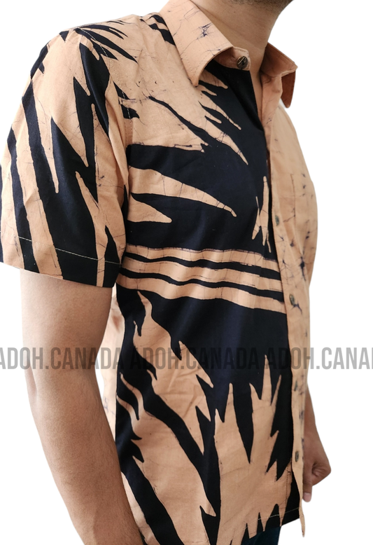SH1144 - Light brown and black designed Batik Shirt | Ceylon Batik | Hand Made | Men's Collection | Cotton Shirt | Summer Wear
