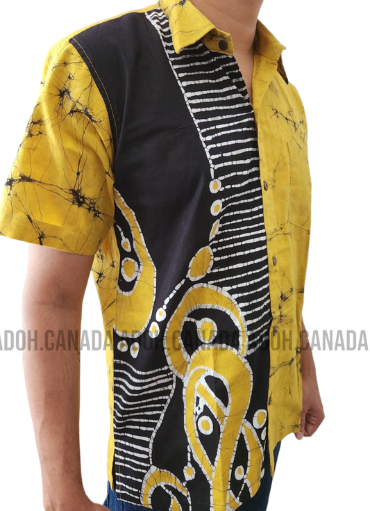 SH1146 - Yellow and Black designed Batik Shirt | Ceylon Batik | Hand Made | Men's Collection | Cotton Shirt | Summer Wear