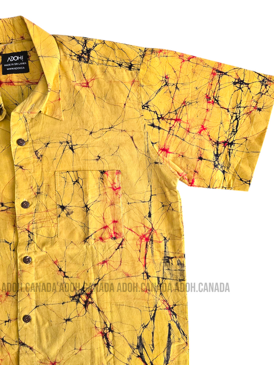 SH904 - Yellow Batik shirt with black and red cracks | Ceylon Batik | Hand Made | Men's Collection | Cotton Shirt | Summer Wear