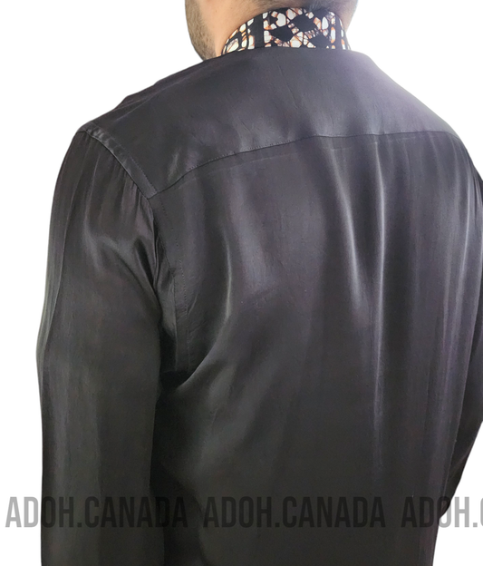 SSH626 - Black Shirt With Brown & White Design | Ceylon Batik | Hand Made | Men's Collection | Silk Shirt | Summer Wear | Party Wear