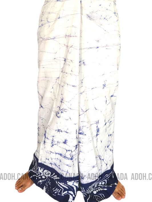 CSA0016 -White Sarong with dark blue cracks | Ceylon Batik | Hand Made | Men's Collection | Cotton Sarong| Summer Wear | Party Wear