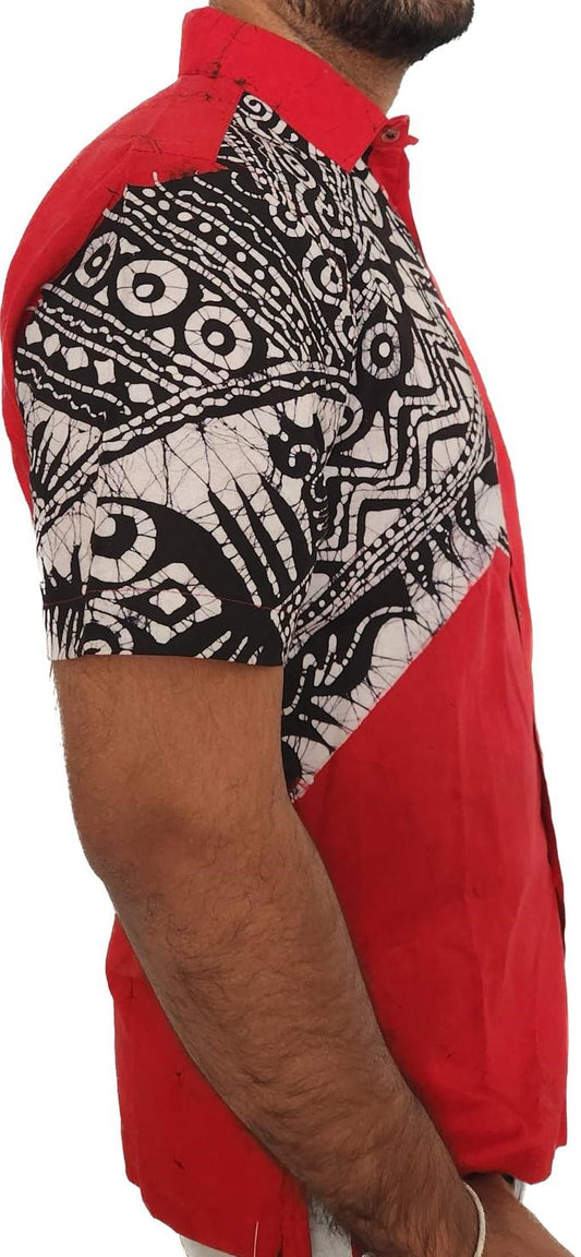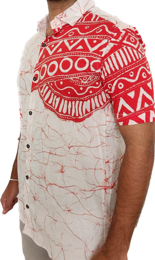 SH0006 - Red & White Batik Shirt | Ceylon Batik | Hand Made | Men's Collection | Cotton Shirt | Summer Wear