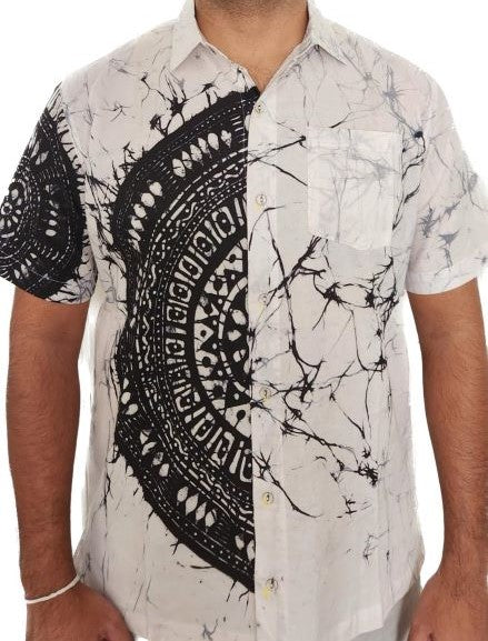 SH0002 - Black & White Batik Shirt | Ceylon Batik | Hand Made | Men's Collection | Cotton Shirt | Summer Wear