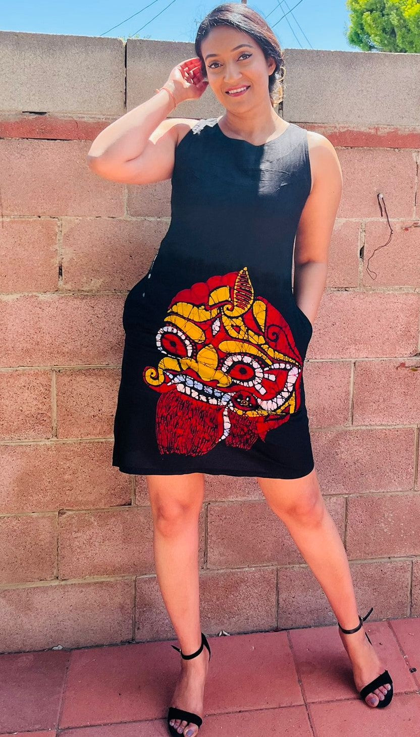CC0006- Black Yaka Short Batik Dress | Ceylon Batik | Hand Made | Summer Collection | Cotton Dress | Summer Wear