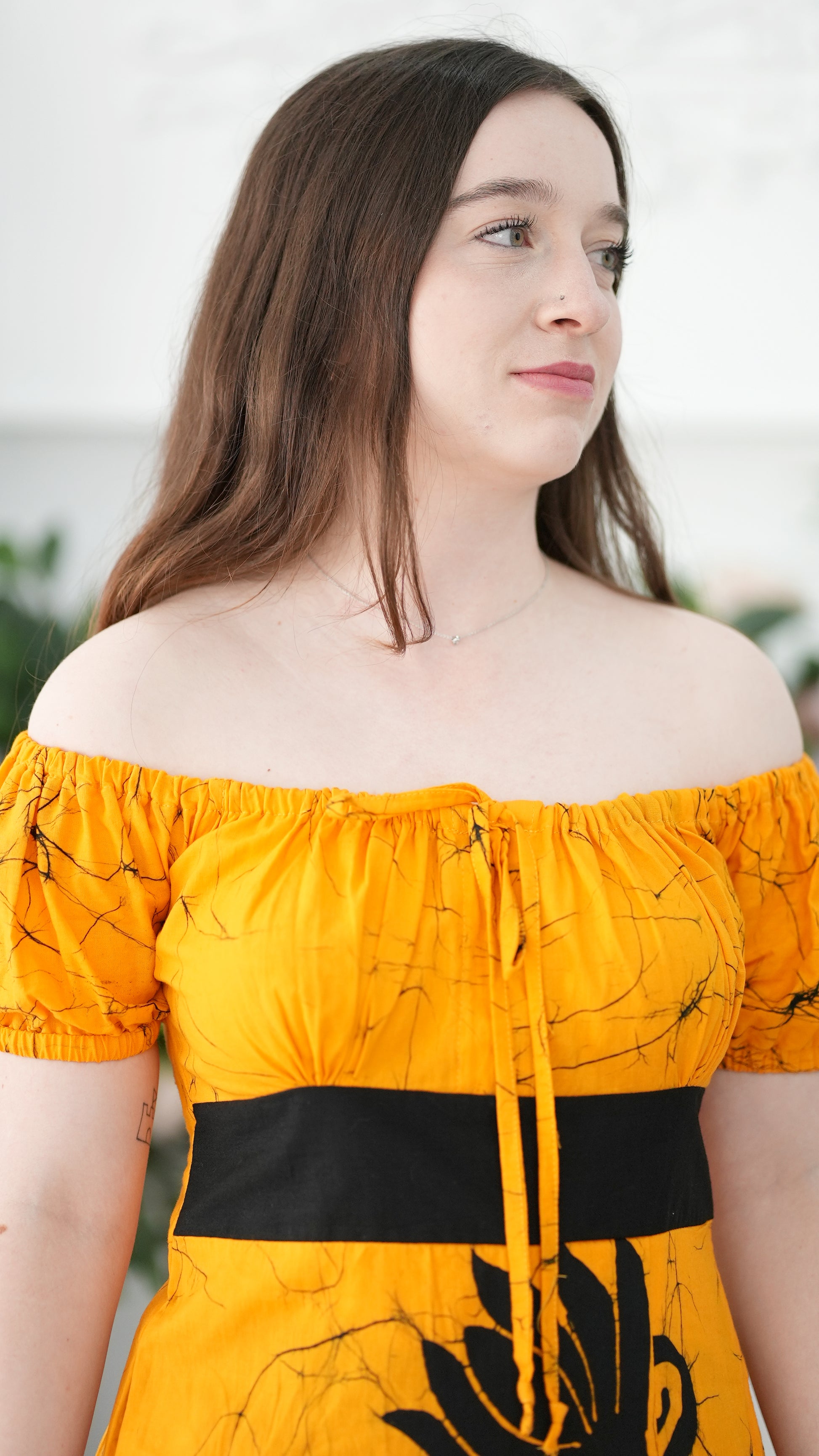 CC0015- Orange Lotus Batik Short Dress | Ceylon Batik | Hand Made | Summer Collection | Cotton Dress | Summer Wear