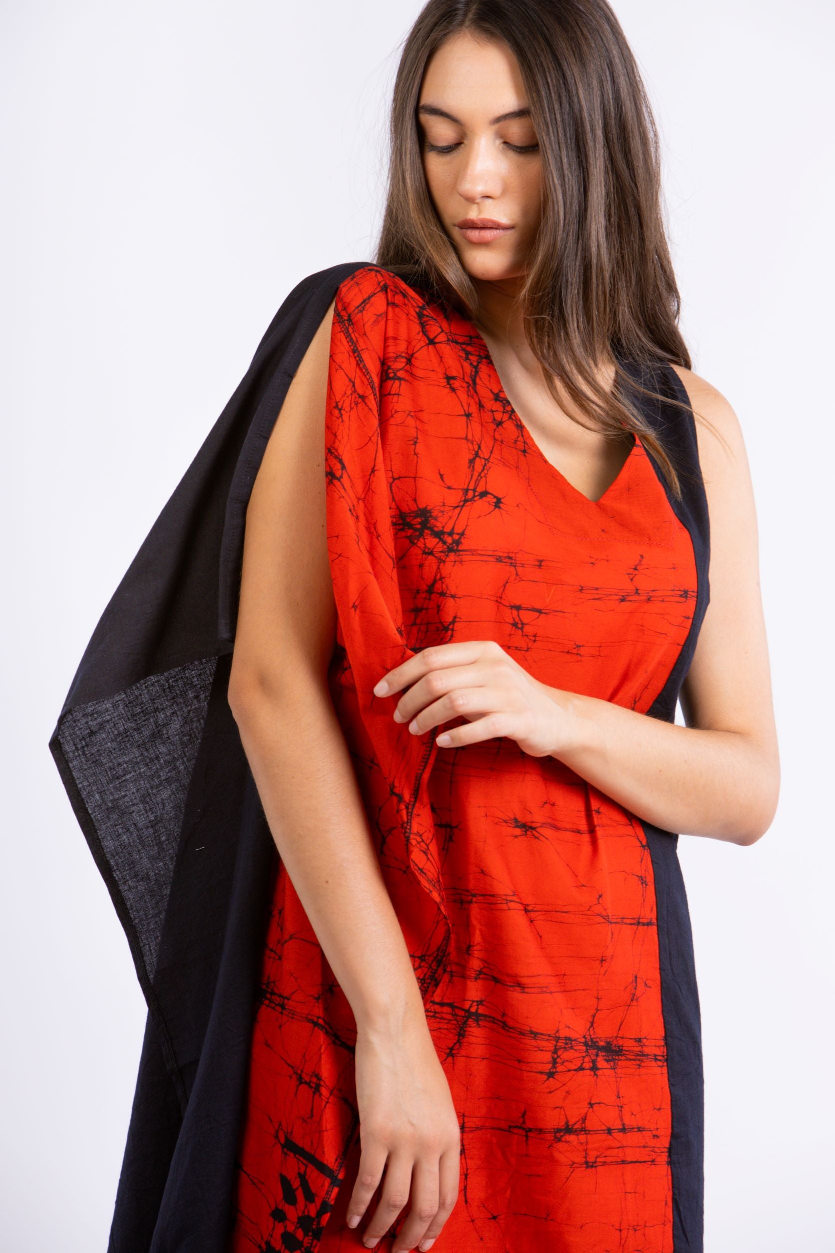 CC0068- Black & Red Cracks Short Batik Dress | Ceylon Batik | Hand Made | Summer Collection | Cotton Dress | Summer Wear