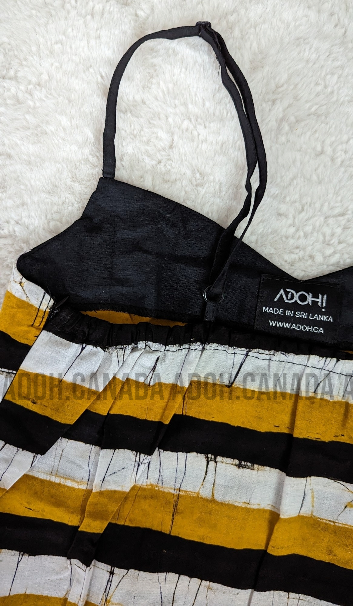 CC0487 - Black, white, and yellow strips designed crop Top Batik | Ceylon Batik | Hand Made | Summer Collection | Cotton Dress | Summer Wear