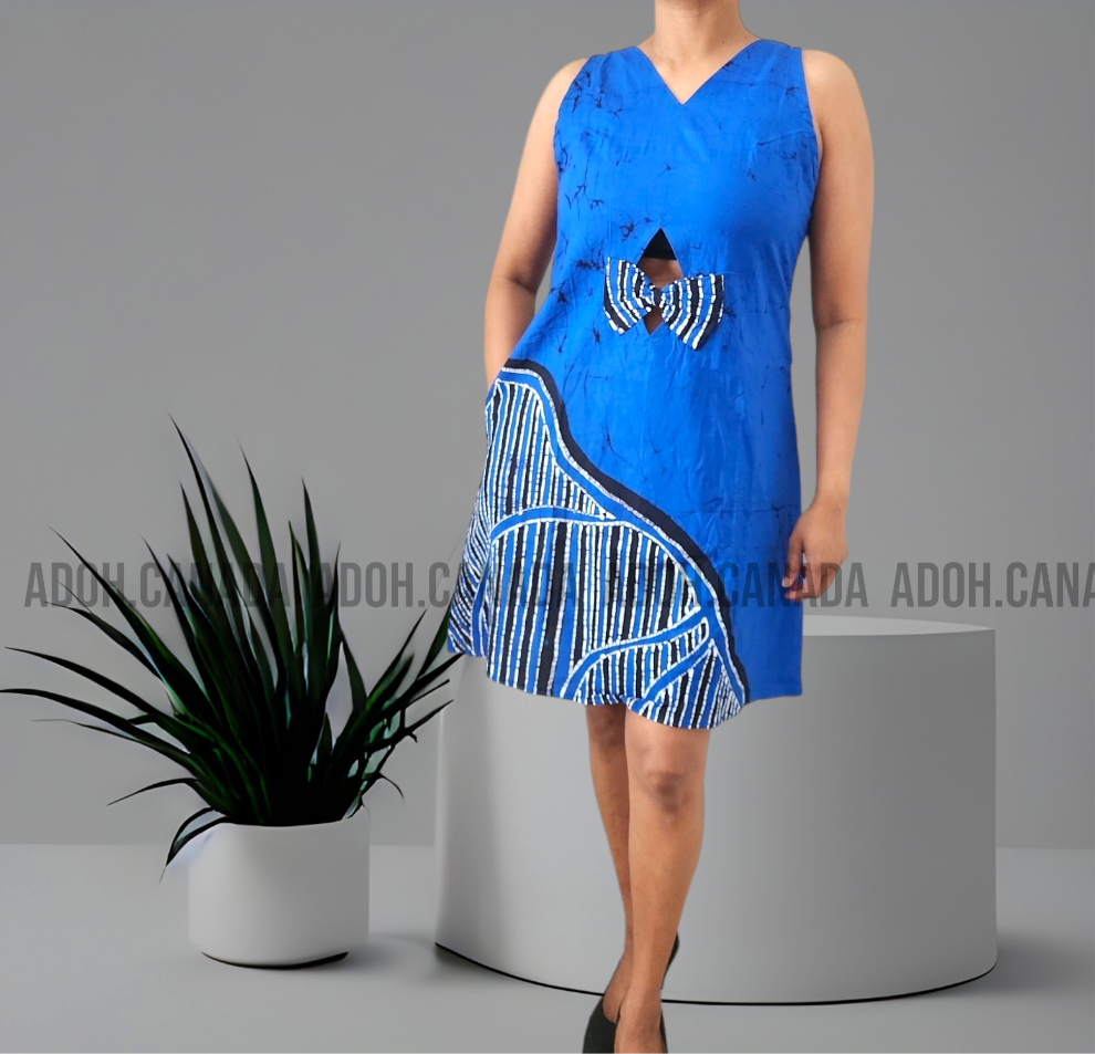 CC1138- Blue Batik Dress with black and white design | Ceylon Batik | Hand Made |Summer Collection | Cotton Dress | Summer Wear