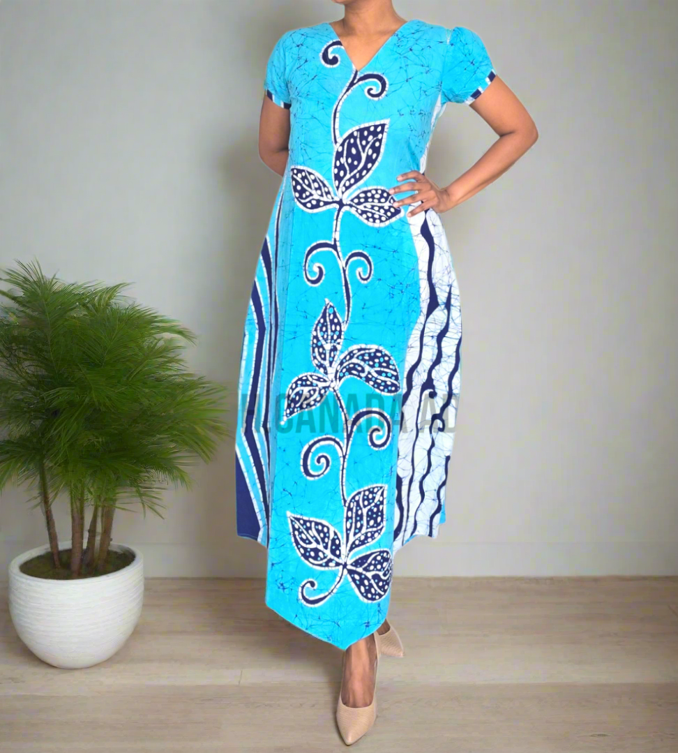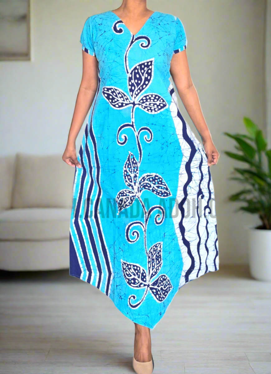 CC0975- Blue Batik Dress with dark blue and white design | Ceylon Batik | Hand Made |Summer Collection | Cotton Dress | Summer Wear