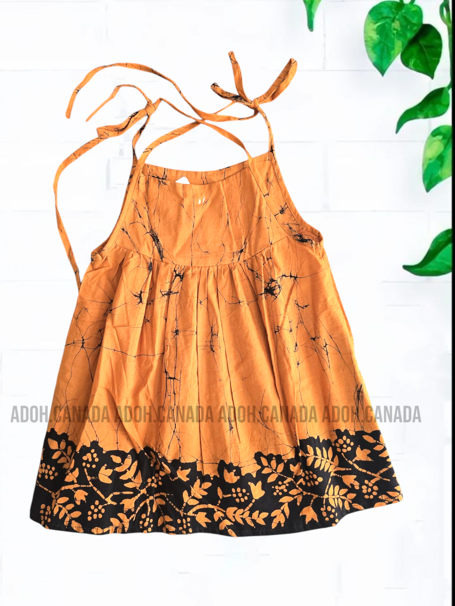 KG0011 - Orange dress with black designed for kid| Ceylon Batik | Hand Made | Kids Collection | Summer Collection | Cotton Dress | Casual wear