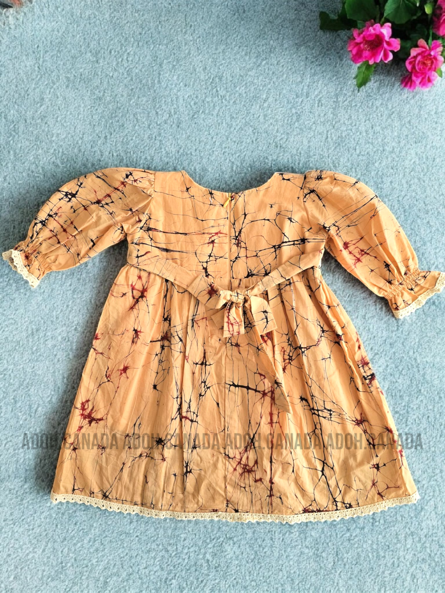 KG1224 - Cremish with red and black cracks dress for kid| Ceylon Batik | Hand Made | Kids Collection | Summer Collection | Cotton Dress | Casual wear