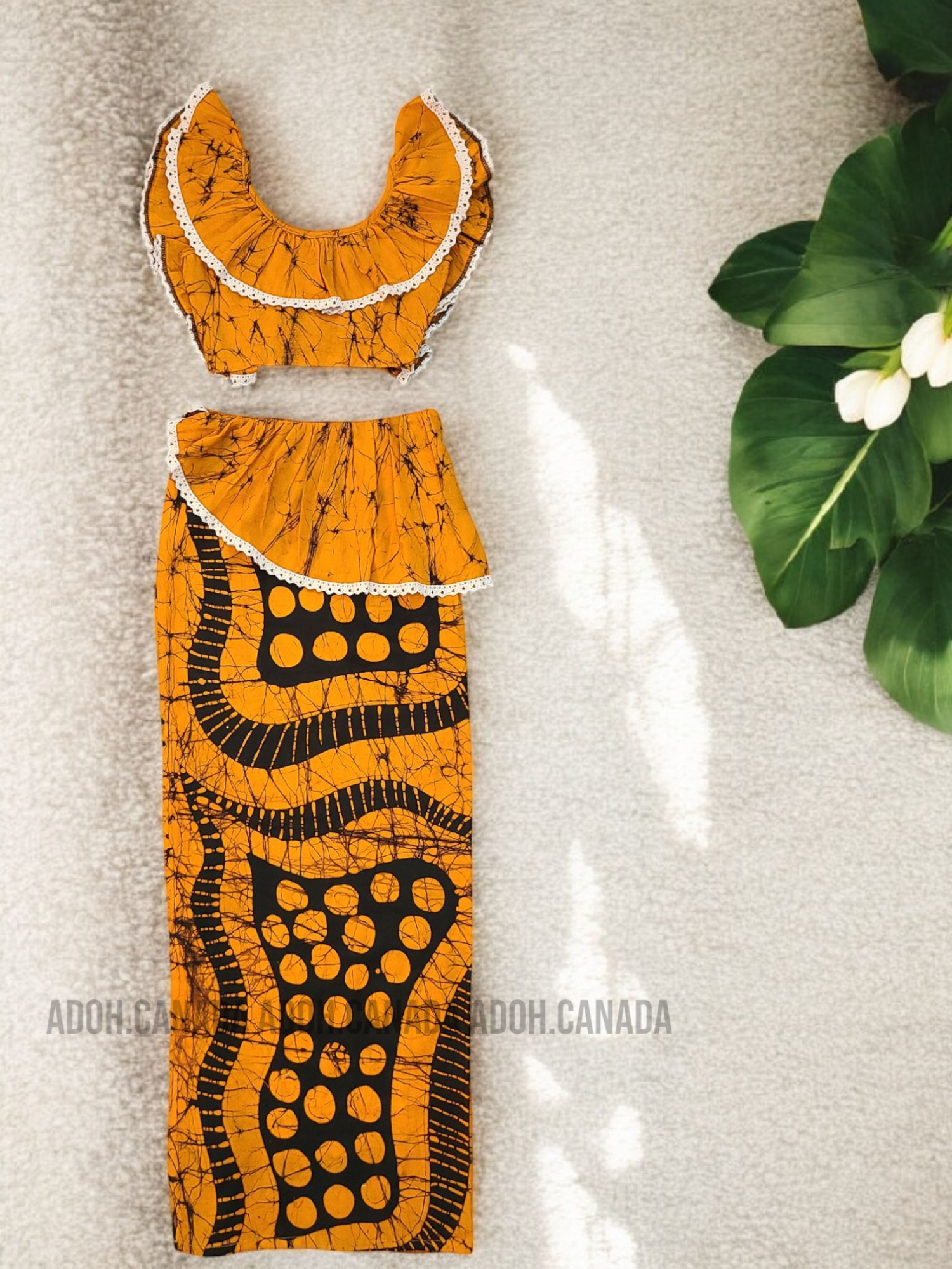 KG1307 - Orange with black designed Lama Saree ( Kids Redda Hatte)| Ceylon Batik | Hand Made | Kids Collection | Summer Collection | Cotton Lama Saree | Kids Redda Hatte | Casual wear