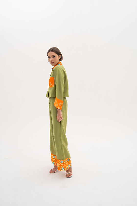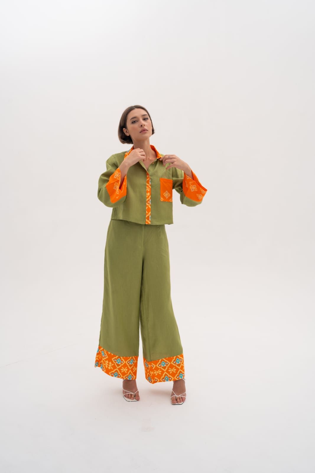 JSC004 - Green Crop Top | Sumba | Motif | Indonesian Collection | Irish Linen