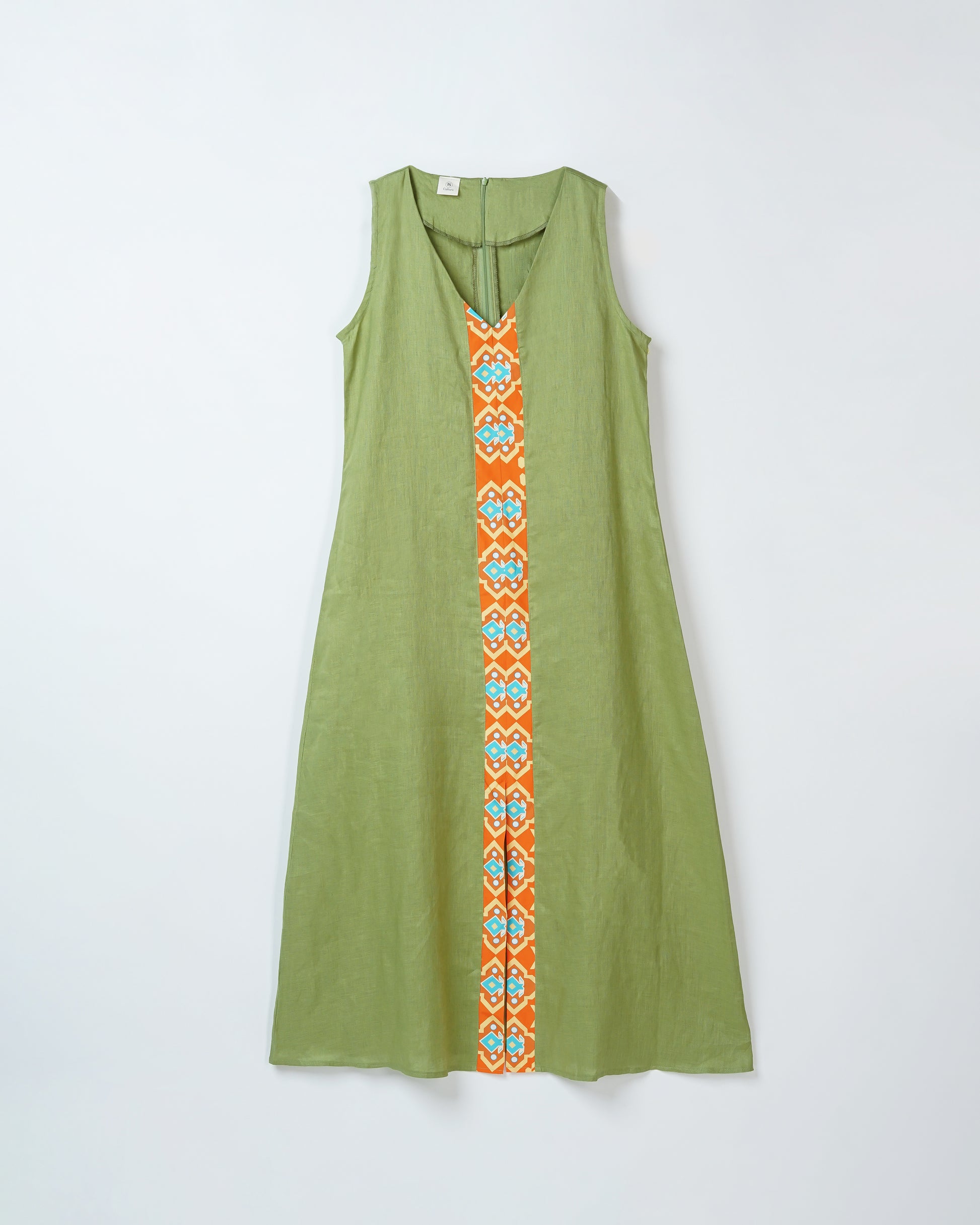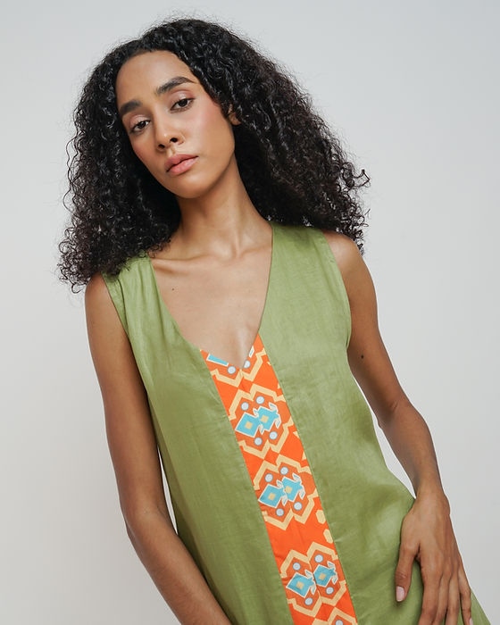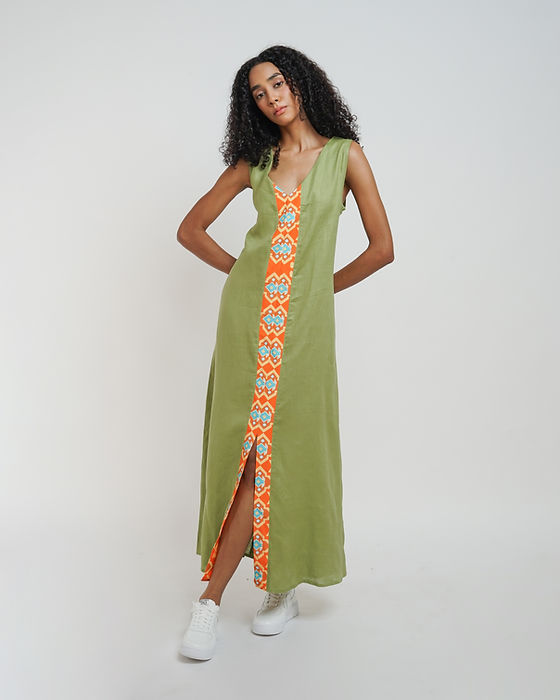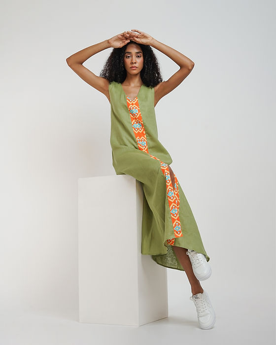 JSC006 - Green Maxi Dress Sleeveless | Sumba | Motif | Indonesian Collection | Irish Linen