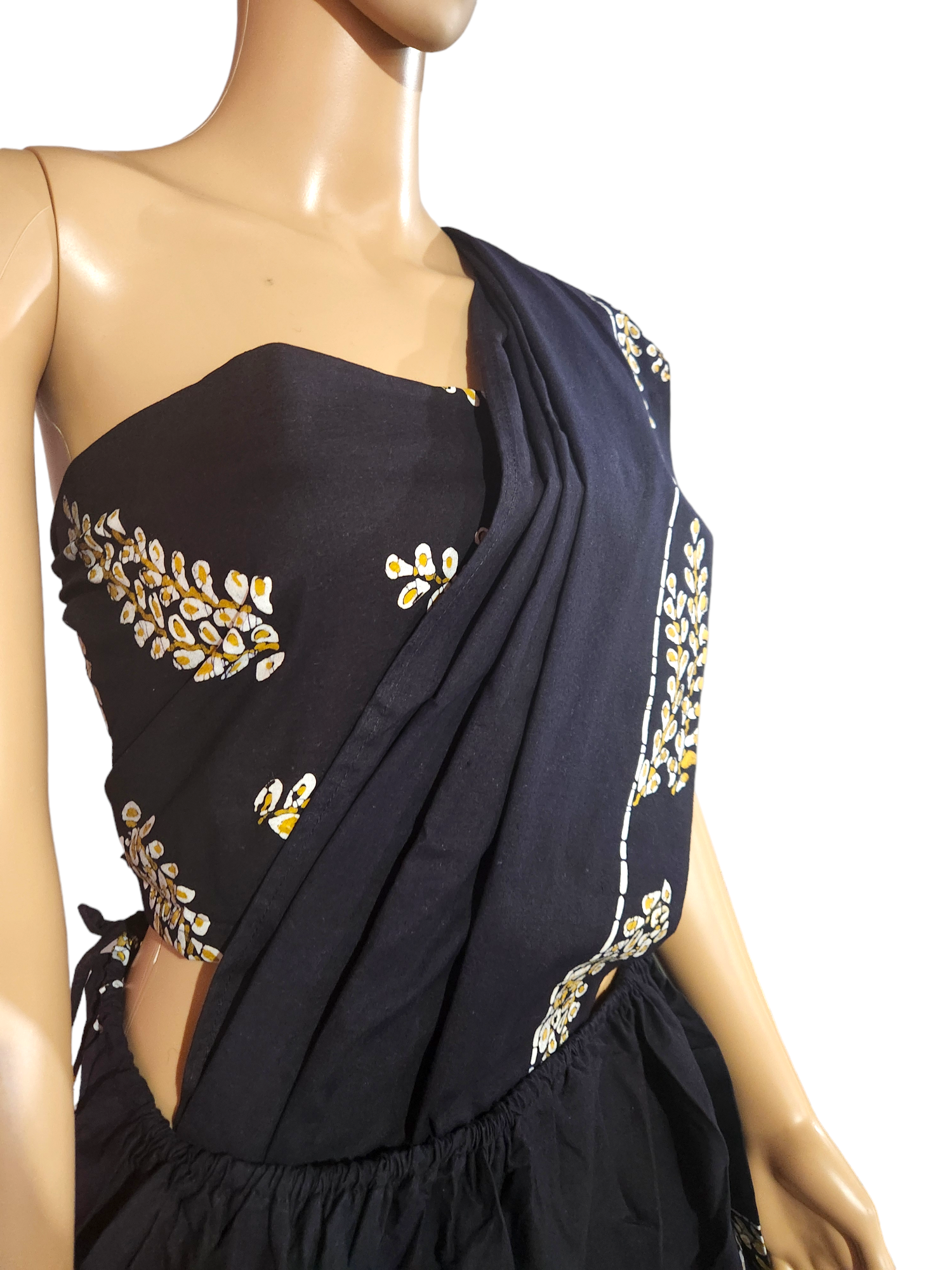 MU0004 Ceylon Batik|Black and yellow Punkalasa designed Kandyan Made-up| Cotton Kandyan Made-up Saree| Exclusive Designer Wear | Kandyan Made-up