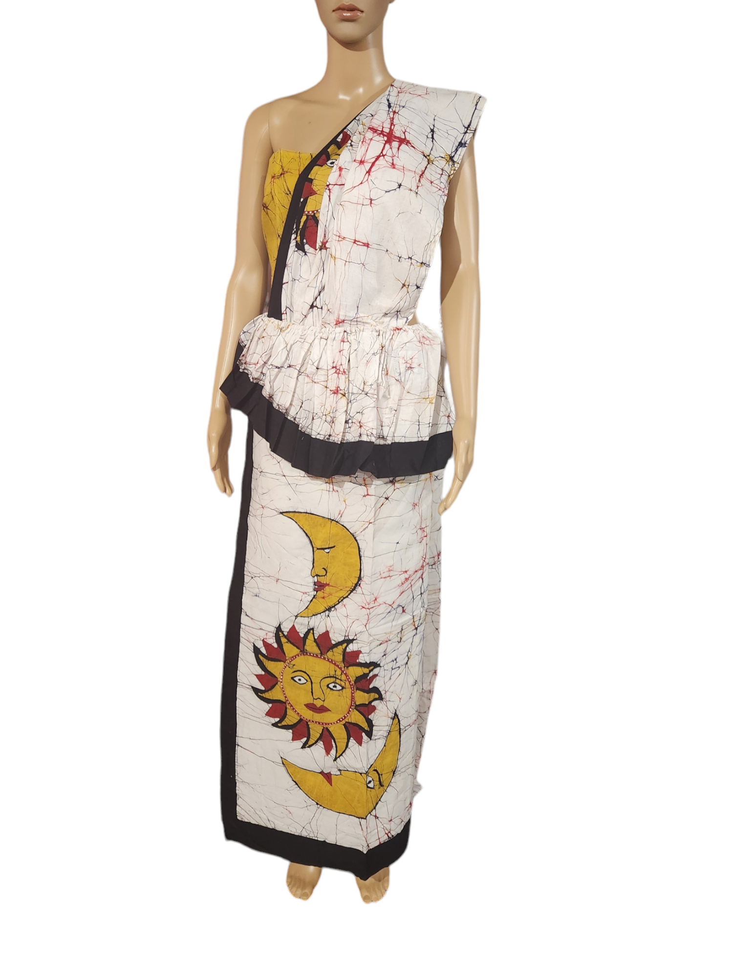 MU0005 Ceylon Batik|white with black and red cracks sun moon designed Kandyan Made-up| Cotton Kandyan Made-up Saree| Exclusive Designer Wear | Kandyan Made-up