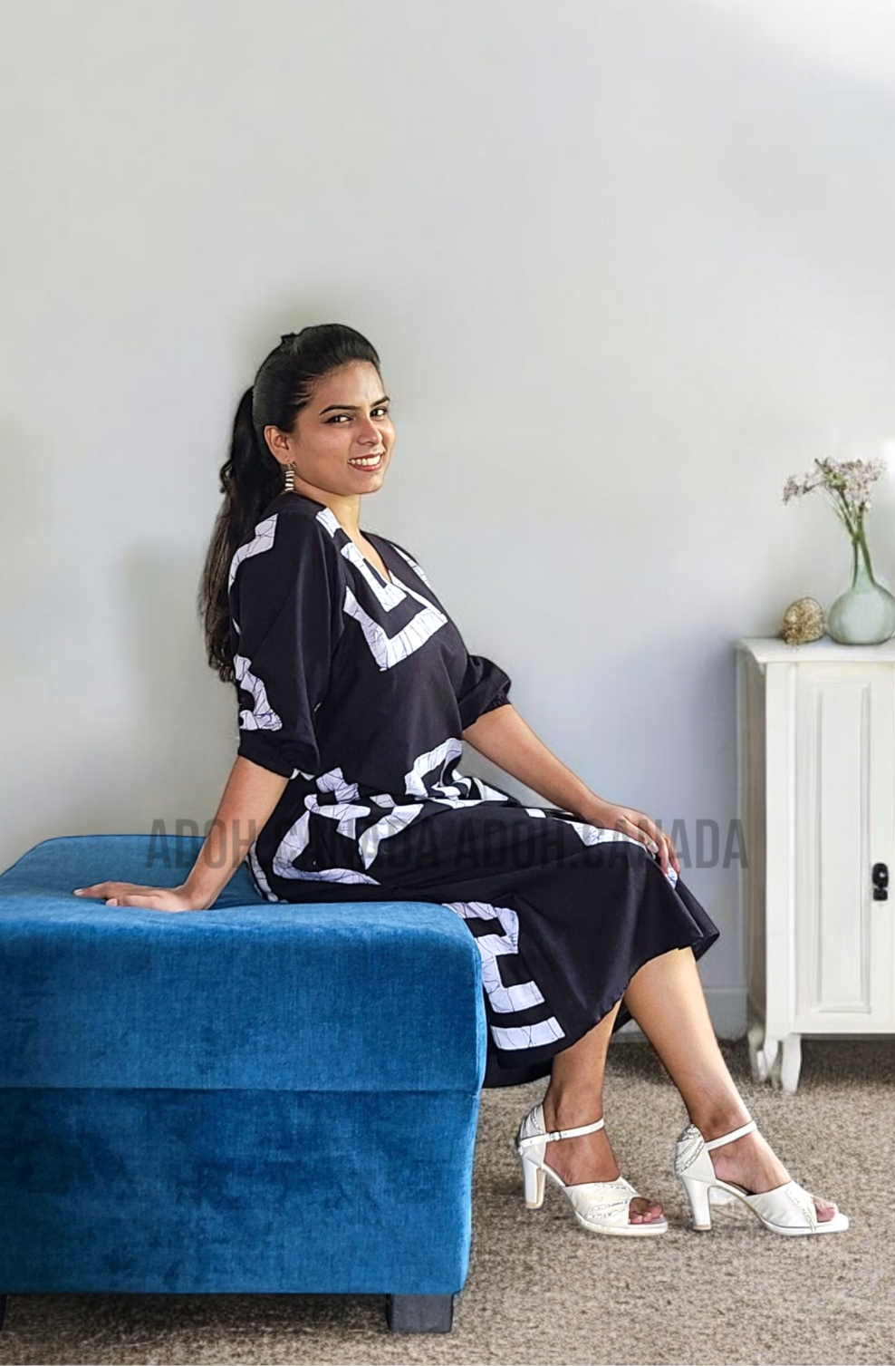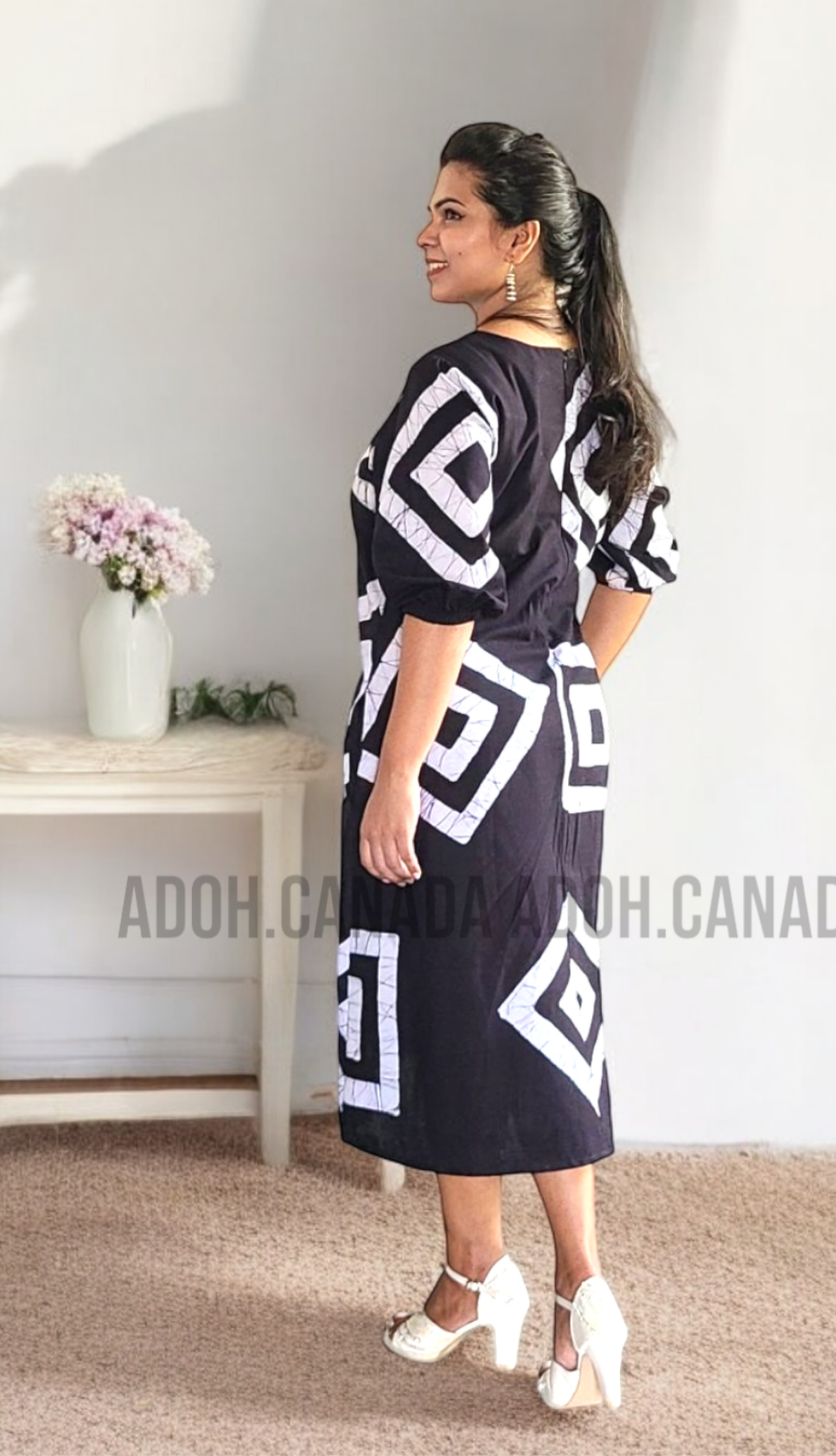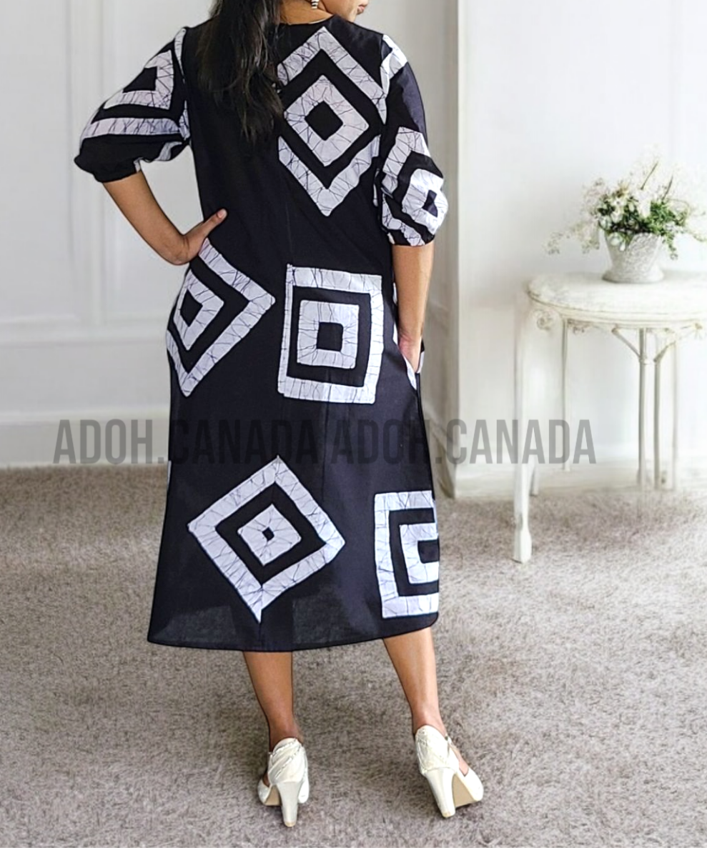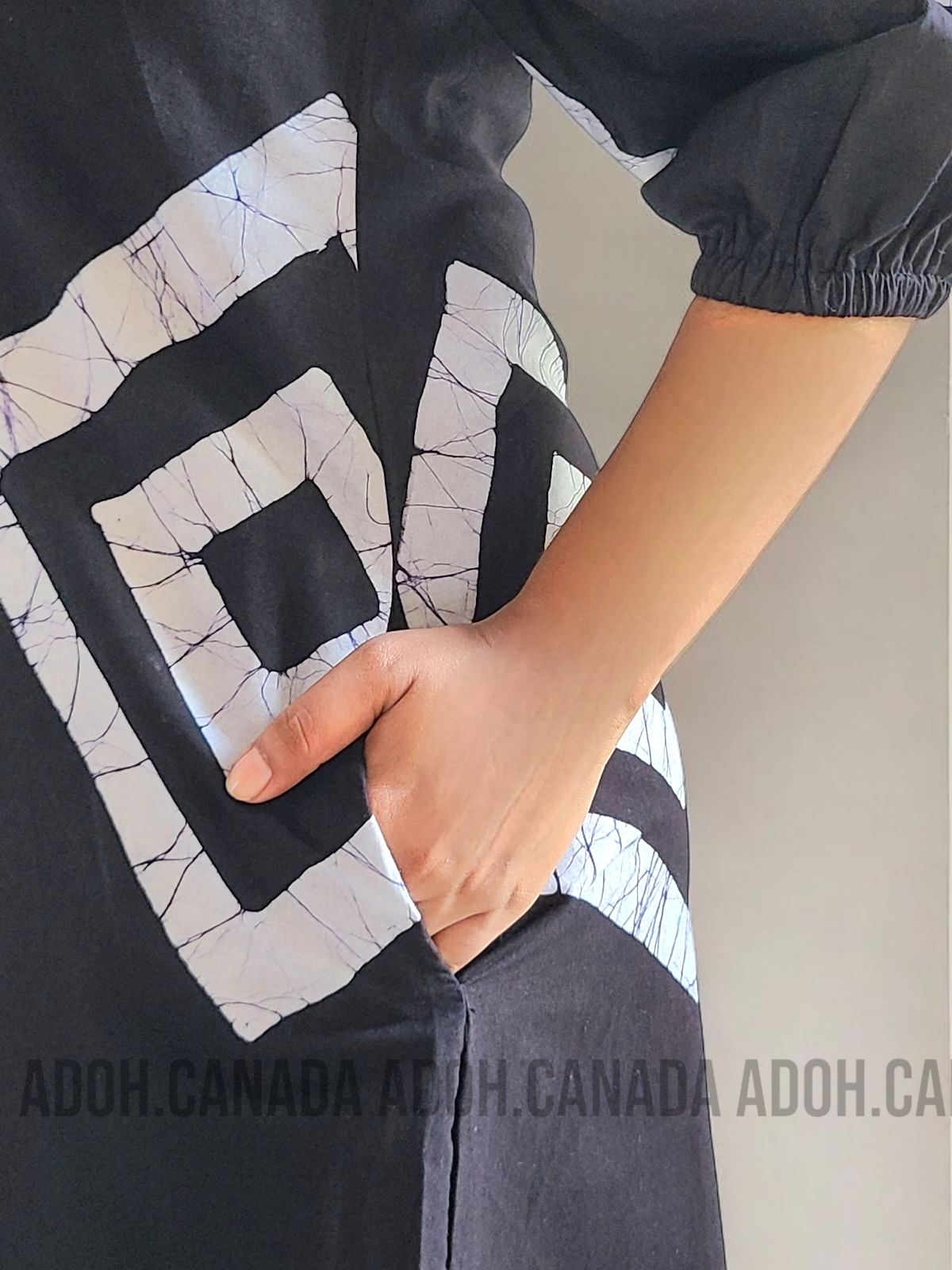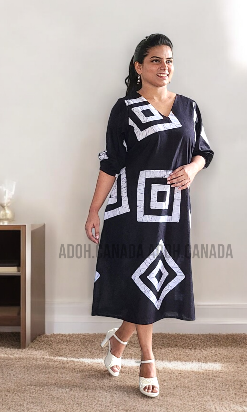 CC1217- Black Cotton Batik Dress with white square design | Ceylon Batik | Hand Made |Summer Collection | Cotton Dress | Summer wear